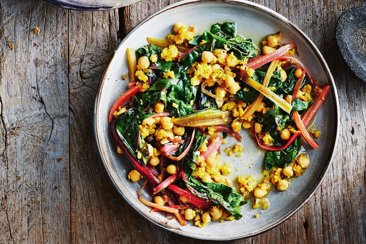 - Heat oil in a large frypan over medium heat. Add cauliflower, cauliflower stalks and chard stalks and cook for 3-4 minutes until tender. Drain on paper towel. Heat another 1 tbs oil and add chard leaves. Season and cook for 2-3 minutes until tender. Remove from the pan and set aside.