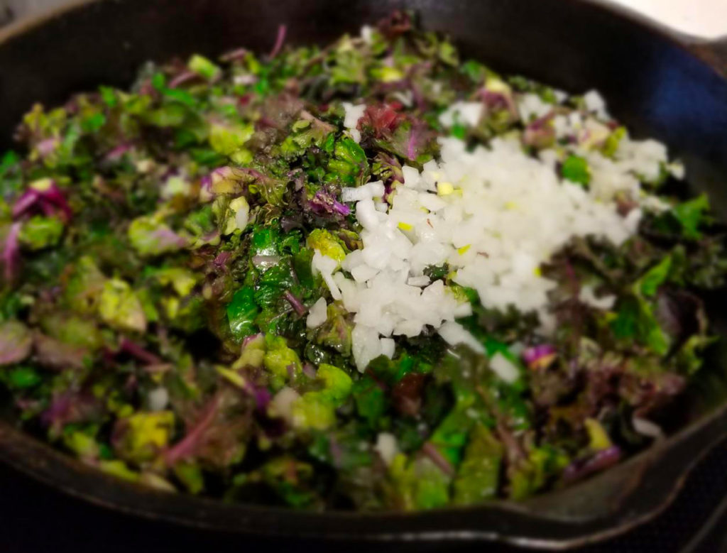 9. Saute onions in a pan w/ olive oil until they start to get soft.