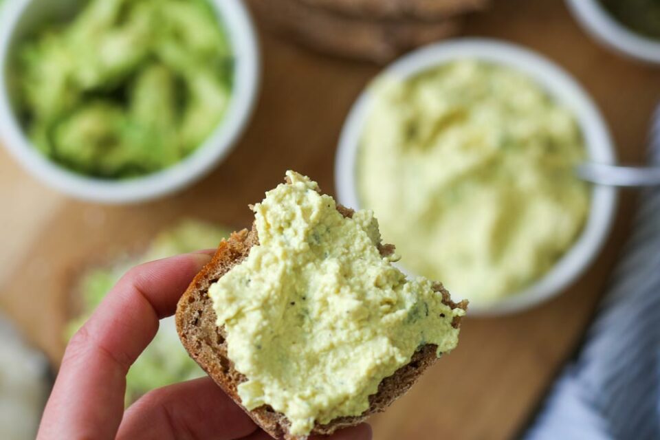- Add the mayo, nutritional yeast, salt, and cayenne pepper to the tofu. Mix.